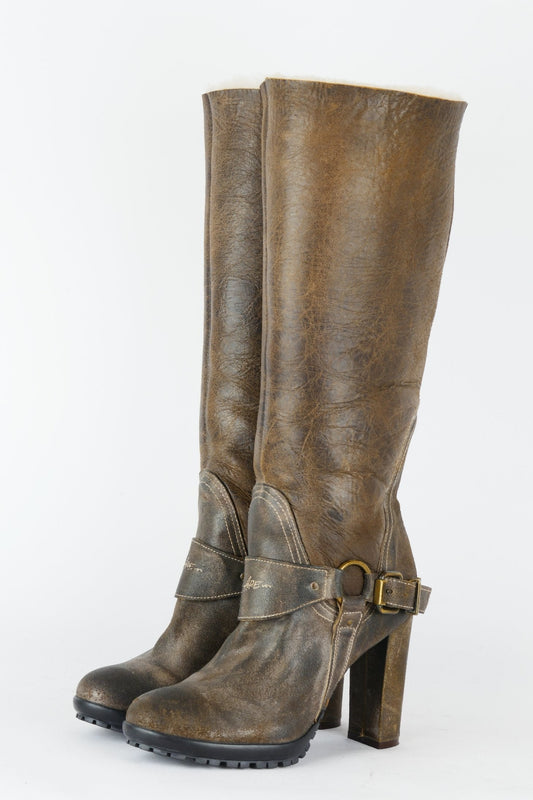 AusverkauftHohe Stiefel Leder dunkelbraun