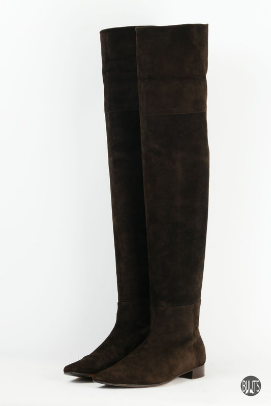 Overknees Wildleder dunkelbraun