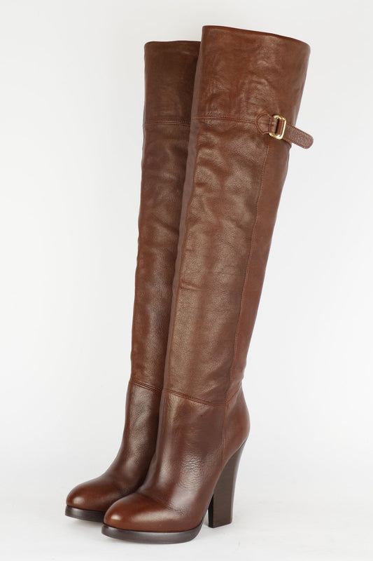 AusverkauftHohe Stiefel Leder dunkelbraun