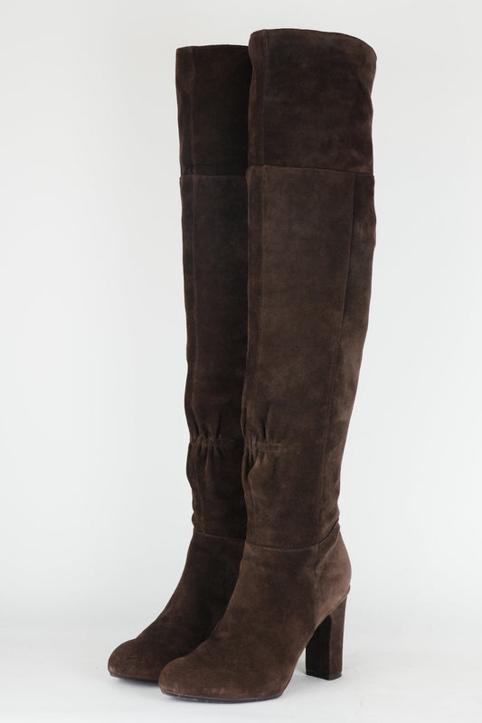 Overknees Wildleder dunkelbraun