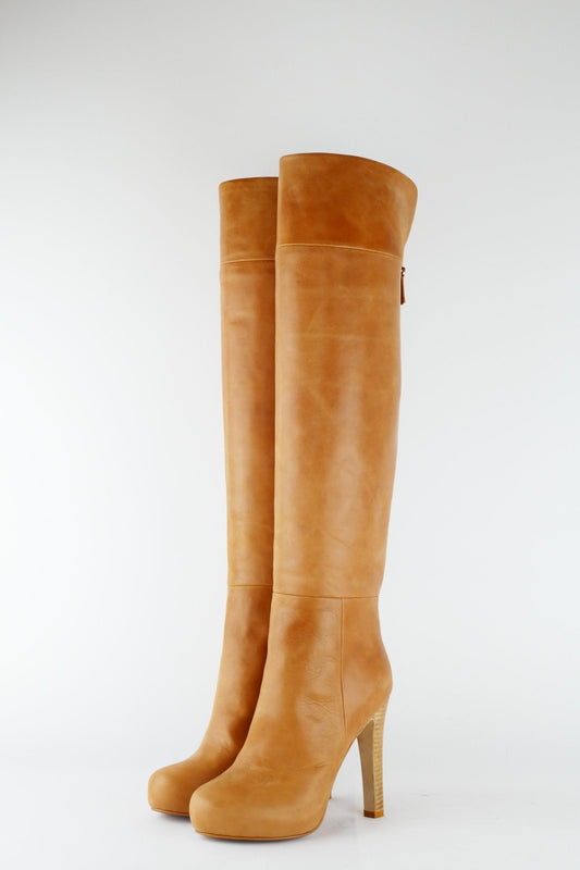 AusverkauftHohe Stiefel Leder dunkelbraun