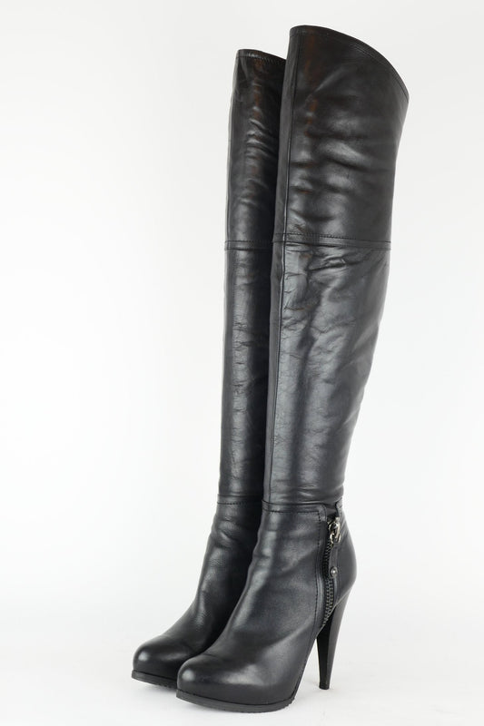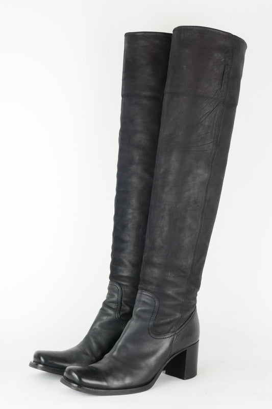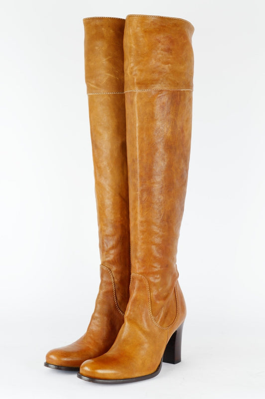 Unsere Overknee Stiefel zeichnen sich durch exquisite Materialien wie Glattleder, Wildleder und Nubuk aus. Jeder Stiefel wird sorgfältig geprüft, damit du sicher sein kannst, dass du ein hochwertiges Produkt in den Händen hältst – egal, ob du dich für ein neues Modell oder ein geprüftes Second-Hand-Paar entscheidest. Nachhaltigkeit wird bei uns großgeschrieben, weshalb wir auch Stiefel aus vorigen Kollektionen sowie neuwertige Vintage-Modelle anbieten.