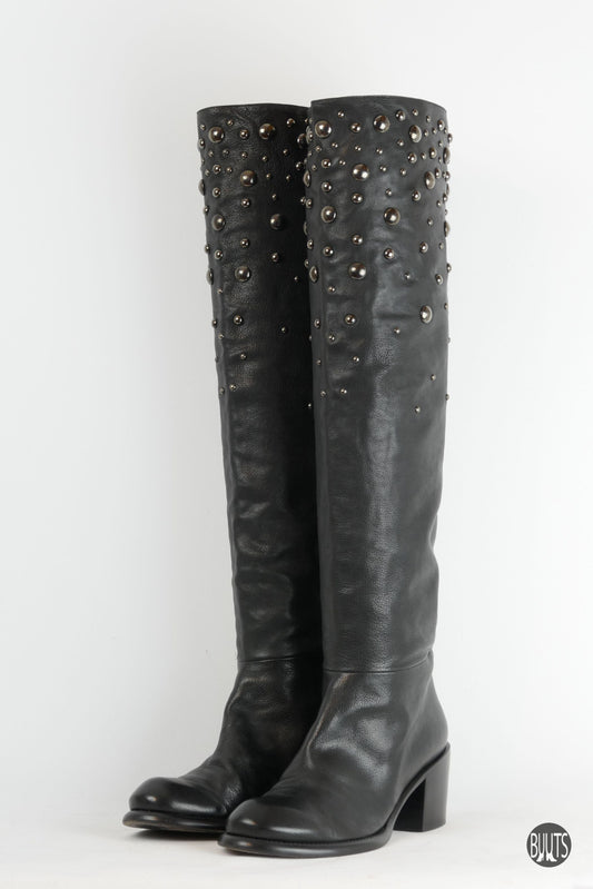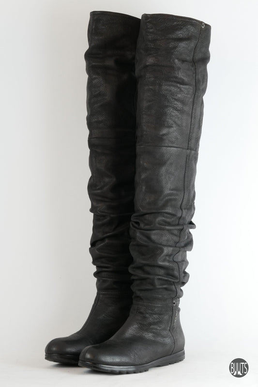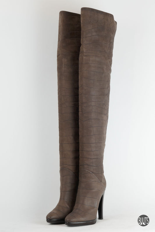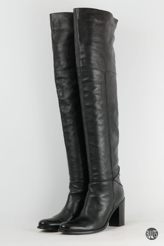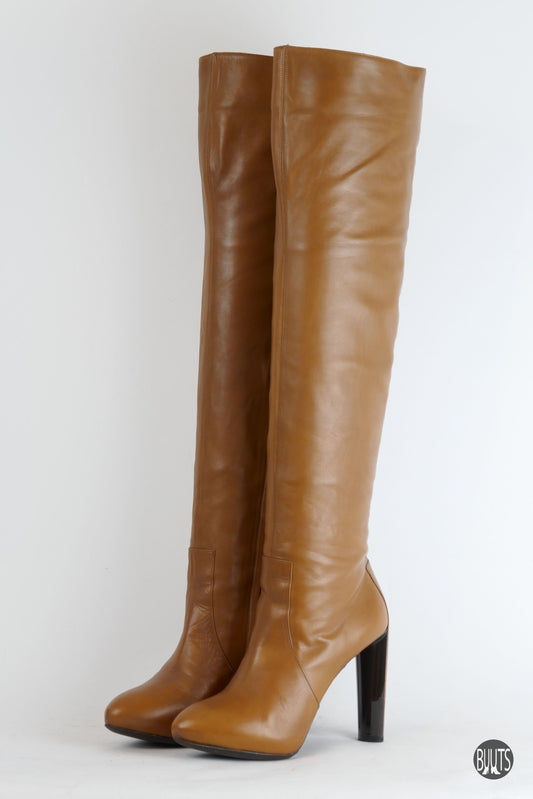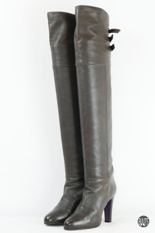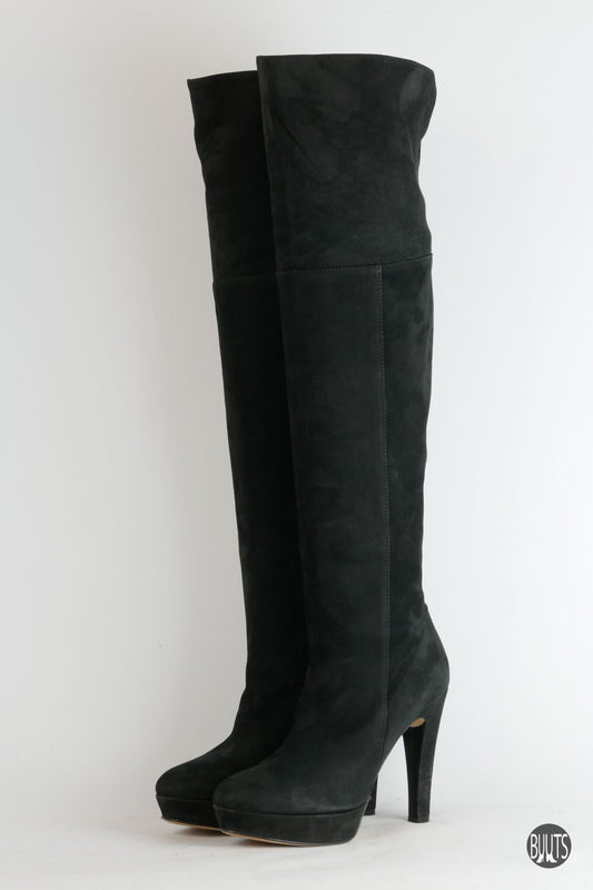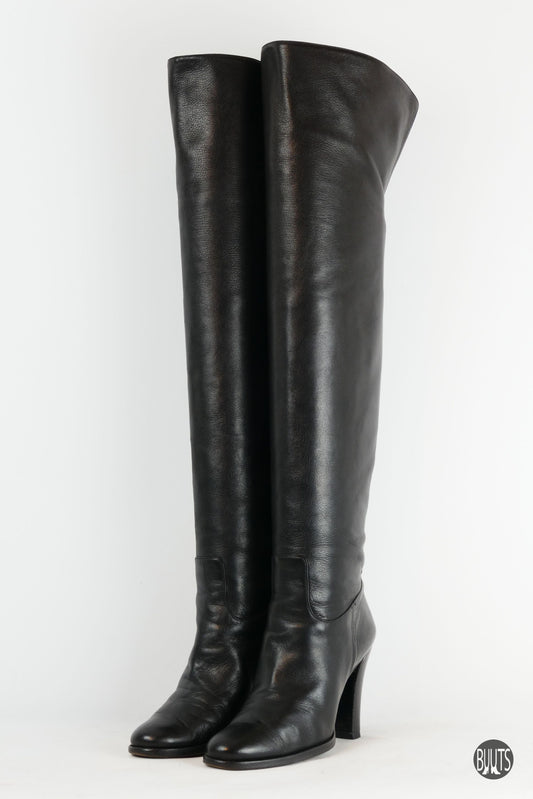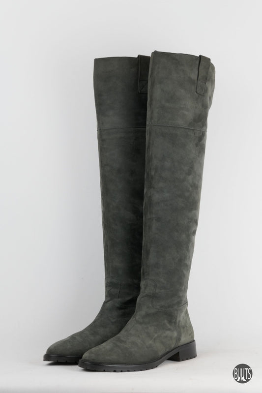 Unsere Overknee Stiefel zeichnen sich durch exquisite Materialien wie Glattleder, Wildleder und Nubuk aus. Jeder Stiefel wird sorgfältig geprüft, damit du sicher sein kannst, dass du ein hochwertiges Produkt in den Händen hältst – egal, ob du dich für ein neues Modell oder ein geprüftes Second-Hand-Paar entscheidest. Nachhaltigkeit wird bei uns großgeschrieben, weshalb wir auch Stiefel aus vorigen Kollektionen sowie neuwertige Vintage-Modelle anbieten.