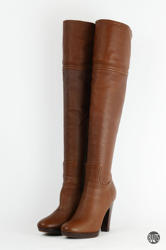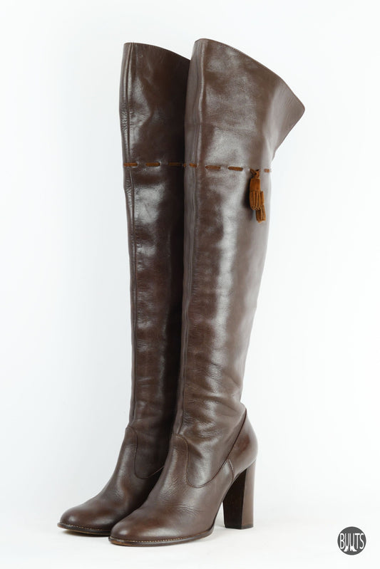 AusverkauftHohe Stiefel Leder dunkelbraun