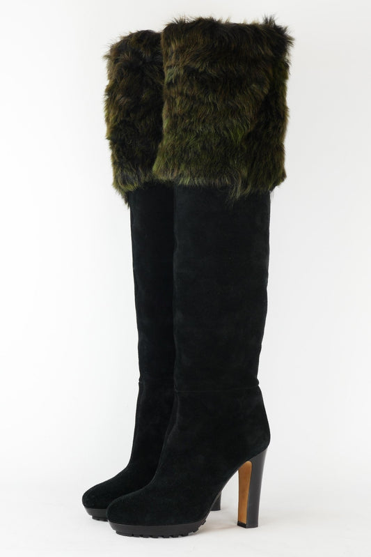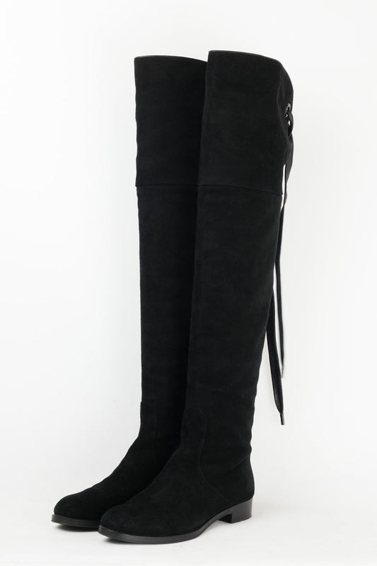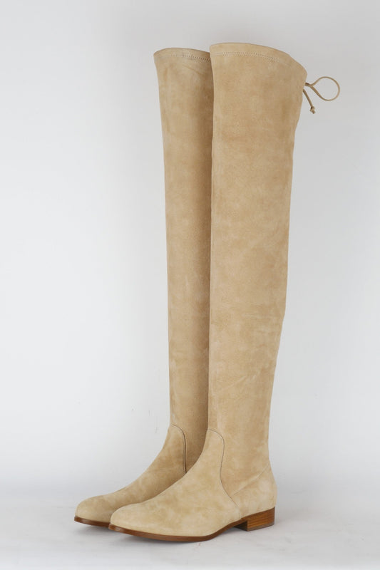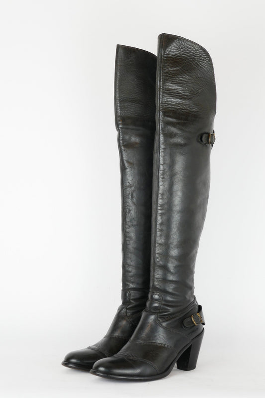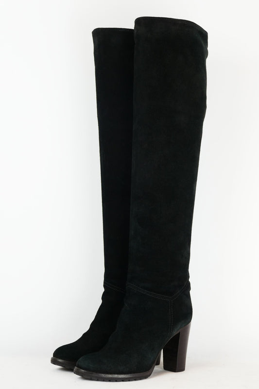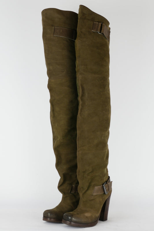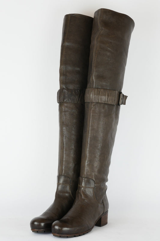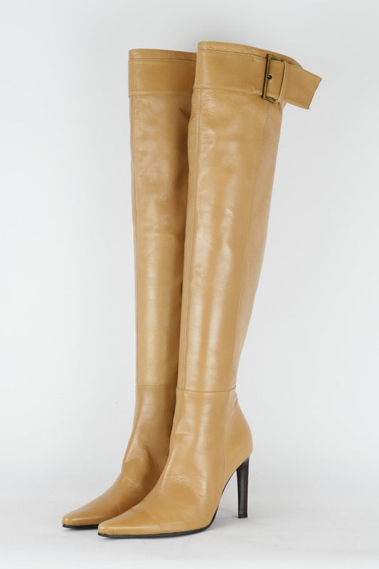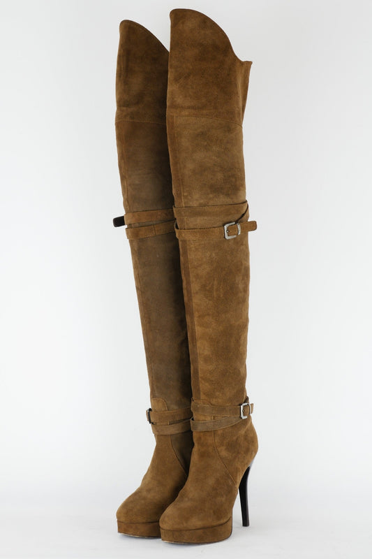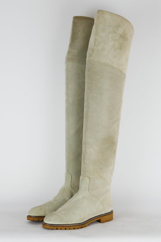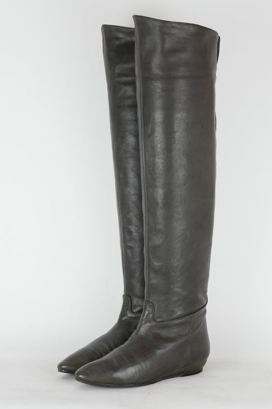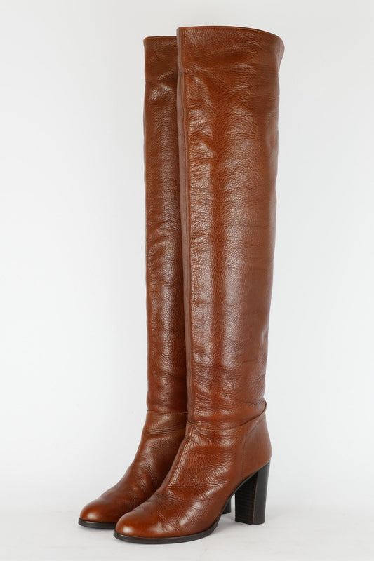 Unsere Overknee Stiefel zeichnen sich durch exquisite Materialien wie Glattleder, Wildleder und Nubuk aus. Jeder Stiefel wird sorgfältig geprüft, damit du sicher sein kannst, dass du ein hochwertiges Produkt in den Händen hältst – egal, ob du dich für ein neues Modell oder ein geprüftes Second-Hand-Paar entscheidest. Nachhaltigkeit wird bei uns großgeschrieben, weshalb wir auch Stiefel aus vorigen Kollektionen sowie neuwertige Vintage-Modelle anbieten.