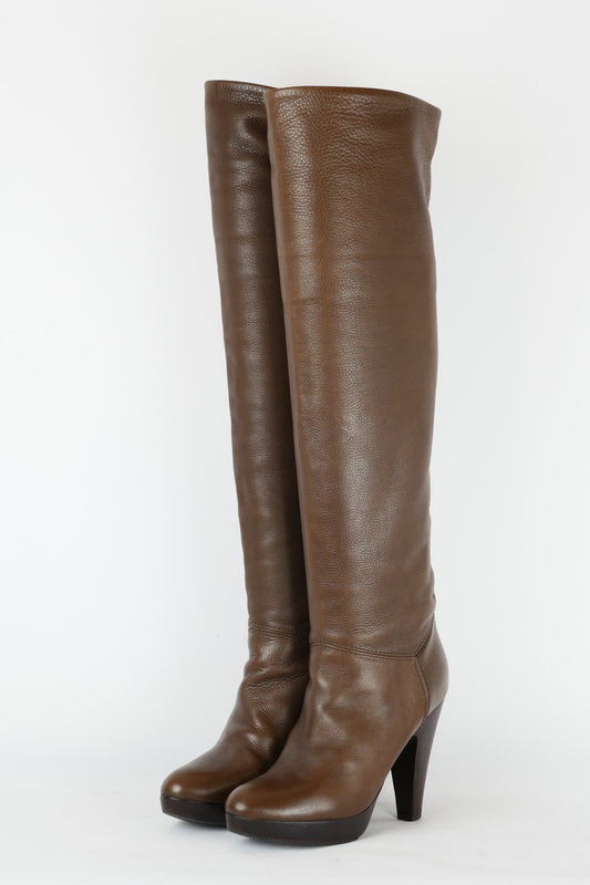 AusverkauftHohe Stiefel Leder dunkelbraun